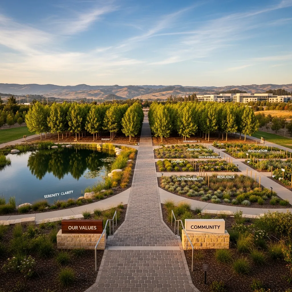 Our strategy prioritizes environmentally responsible choices, from water-efficient irrigation systems to native plant selections that support local ecosystems.